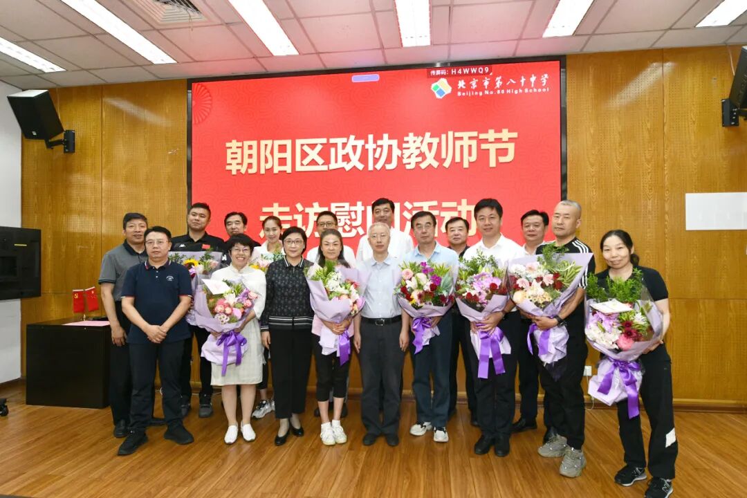 在第40个教师节来临之际,区政协主席王旭率队来到北京市第八十中学望京校区,看望并慰问部分教育战线的政协委员,向他们致以节日的问候和祝福。区政协副主席张岩、李靓、王冬岩,秘书长董会生,区委教工委书记董健,区政协办公室主任良彪、专委会工作二室主任邓献云等一同参加。