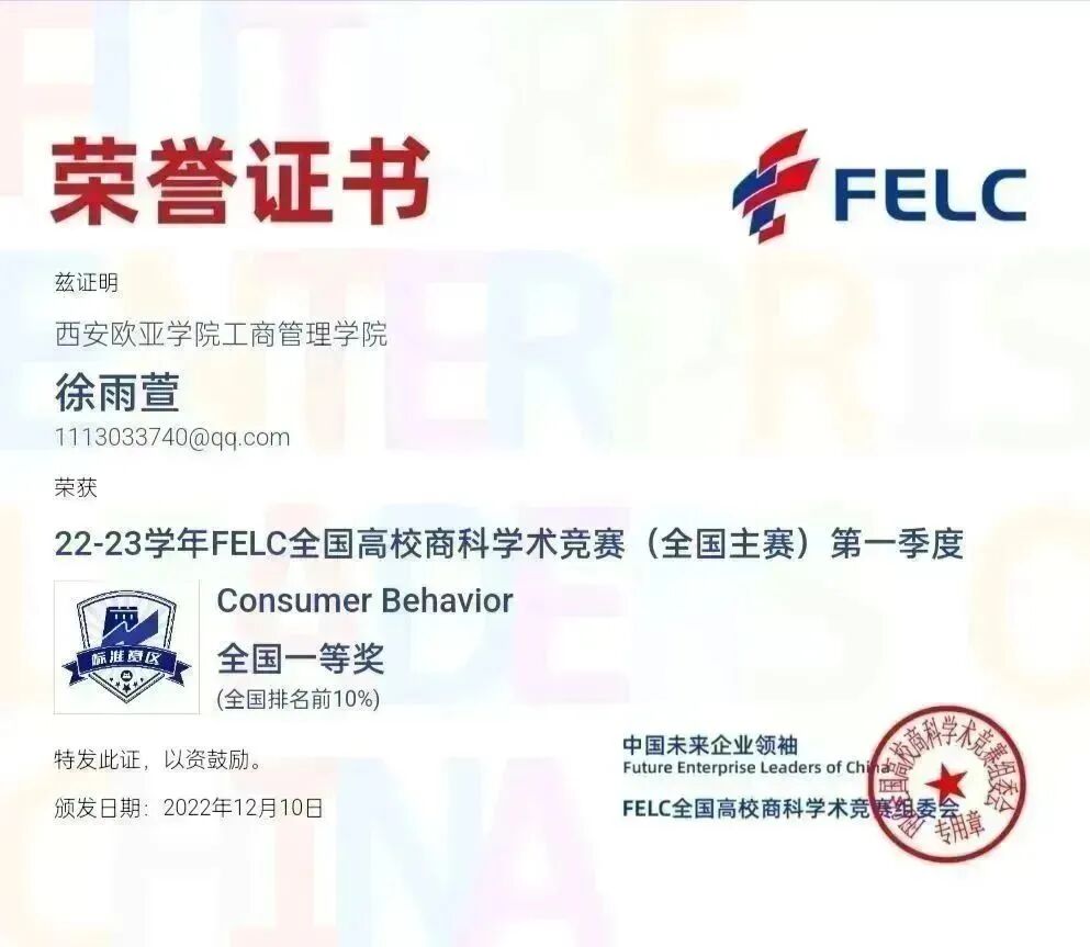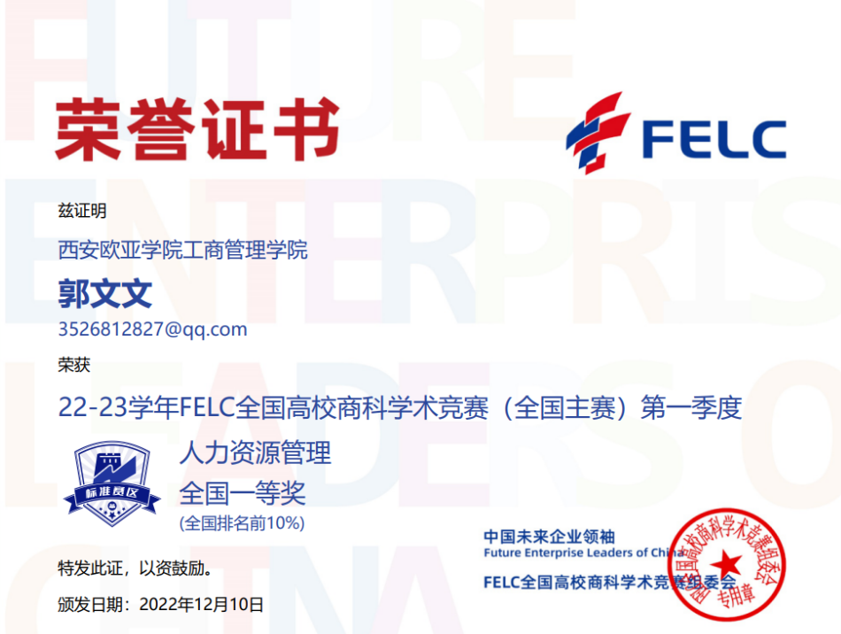 FELC全国高校商科学术竞赛是由中国未来企业领袖(Future Enterprise Leaders of China,简称FELC)面向全国高校学生开展的专业商科竞赛。西安欧亚学院工商管理学院坚持以赛促学,将竞赛打造成为学院特色,希望通过此次比赛,学生的学科知识及实战能力得到提升。