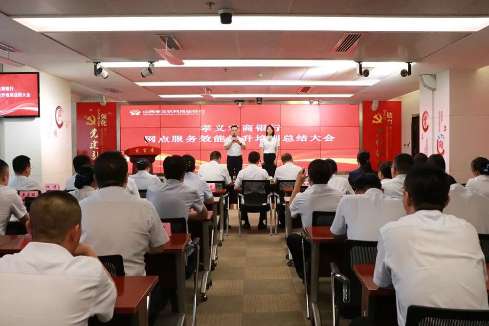 8月16日,孝义农商银行组织召开“服务效能提升培训”总结大会,集中展示此次服务效能提升培训成果,并对全体参训员工的辛勤付出与显著进步表示肯定与表彰。