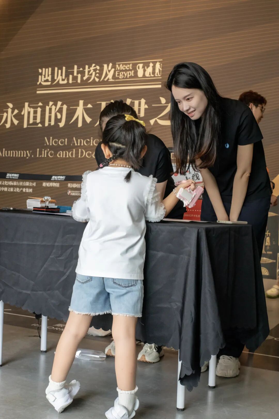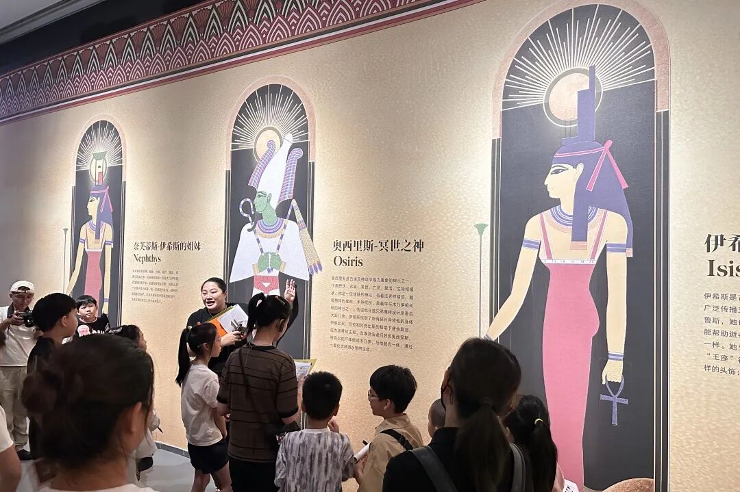 古老的历史文物、精美的展陈设计、引人入胜的讲解、有趣的互动游戏……现场,孩子们从多个维度追溯千年古国的文明,感受神话与现实世界的交织经纬。
