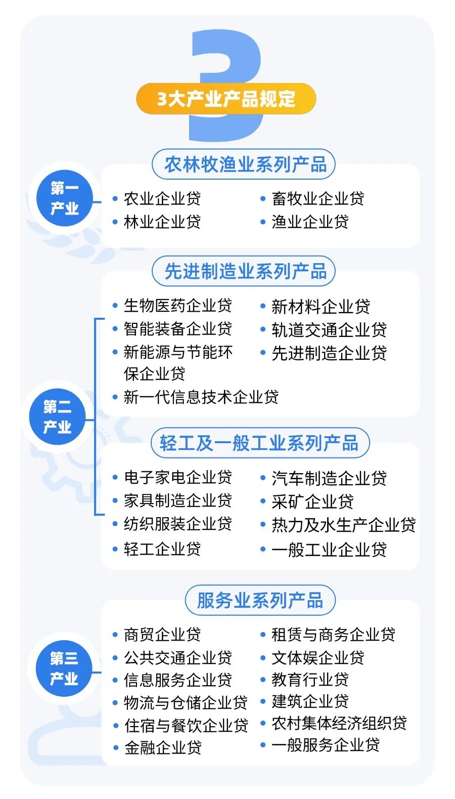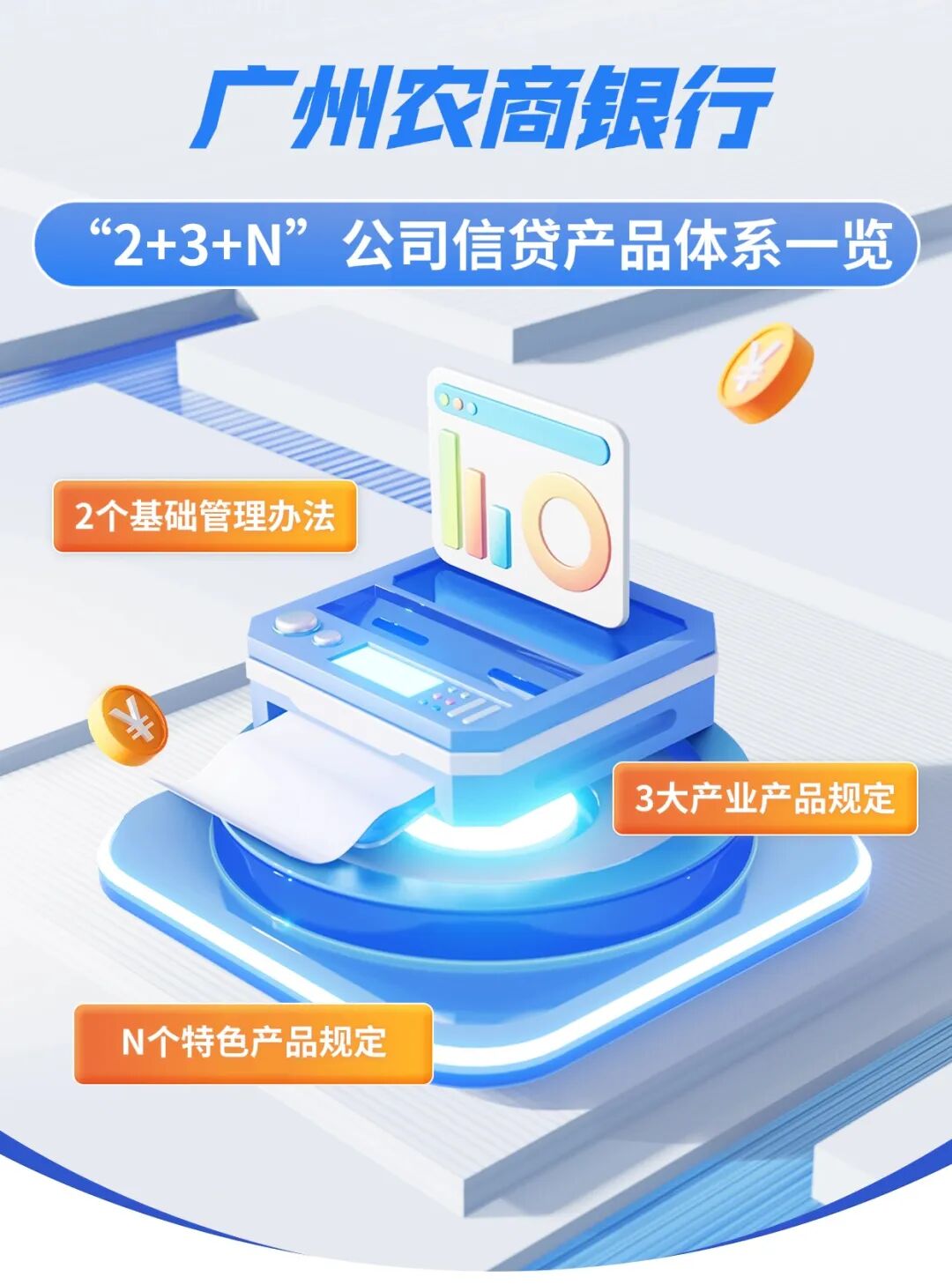 “2+3+N”公司信贷产品体系,由“2个基础管理办法”“3大产业产品规定”及“N个特色产品规定”三个板块构成。其中,“3大产业产品规定”通过深入研究分析行业产业政策、经营特征、发展前景和金融需求,科学设计不同行业客群的准入要求、授信额度、贷款期限等,在满足各行业特色需求的同时,切实提升信贷服务的标准化程度。“N个特色产品规定”在行业分类基础上,强调特色产品行业属性,结合细分行业政策和区域产业发展情况出台的特色拳头产品,充分发挥广州农商银行深耕本土、贴近市场、贴近客户的优势,实现银行与企业的效益双向提升。
