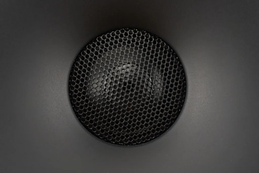 理论上一整个织物网罩可以覆盖整个扬声器的正面,但由于其弧形设计,这将导致成本显著增加。因此,Canton采取了一种更为经济的设计方案,针对每个喇叭单元分别设计,并通过磁力吸附在Reference 9的驱动环上。这些磁盘同样设计成弯曲形状,以确保与外壳保持齐平。虽然这是一个小细节,但它体现了Canton(德国金榜)在产品设计上的细致和认真态度。