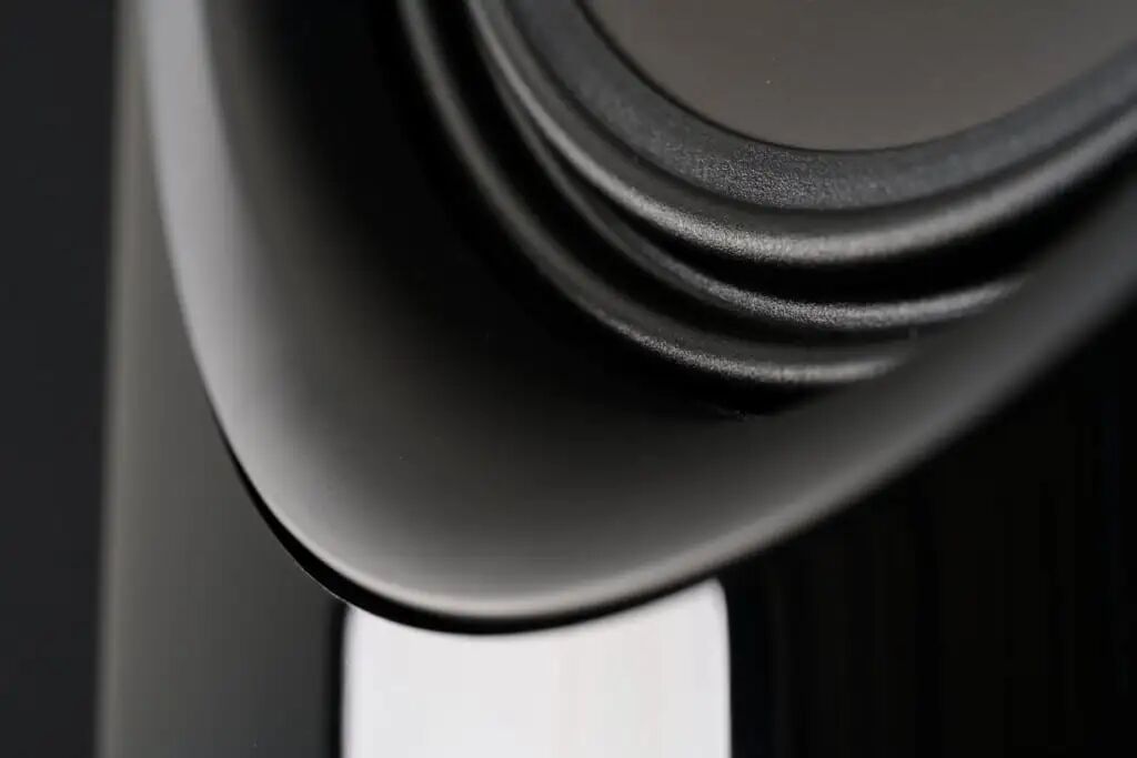 顶部呈向上弯曲并后倾的态势。与弯曲的前面板一起,能够有效防止声波在内部产生反射,同时避免了声学模式的形成。这种圆形、近乎有机的外观,不仅是设计团队的灵感体现,更是其功能性的关键要素。