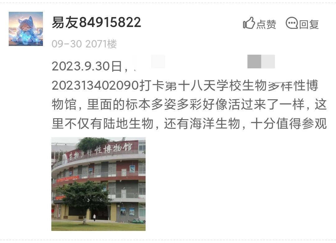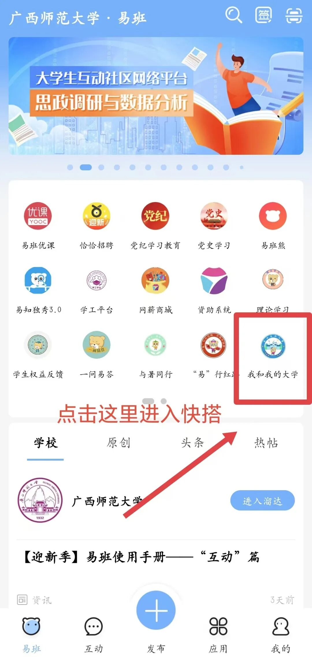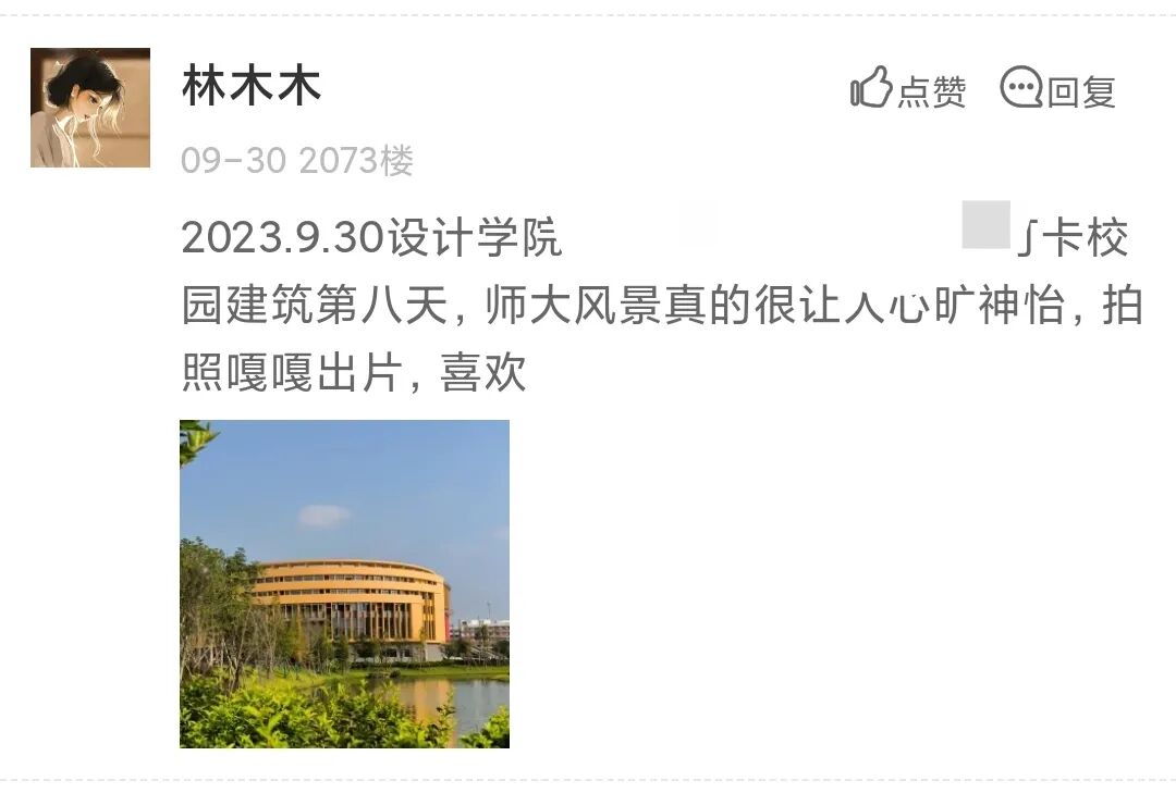 (2)选取学校的特色场景,新生进行拍照,在快搭上上传自己和特色场景的合影留念,并发表自己对于学校的初印象。