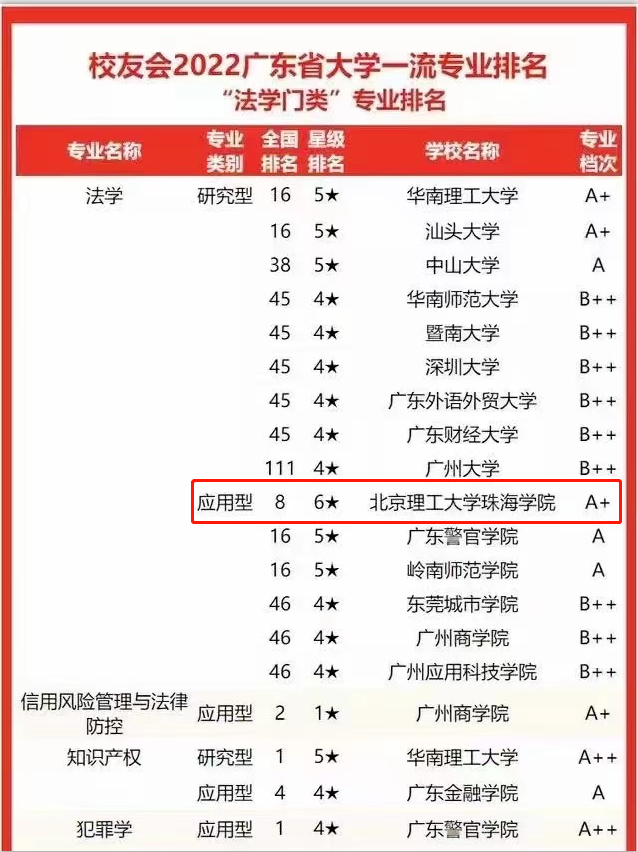 全国第三方大学评价机构艾瑞深校友会网(Cuaa.Net)撰写完成、科学出版社出版发行的《2022校友会中国大学排名—高考志愿填报指南》中,民商法律学院法学专业在“法学门类”中获评应用型法学六星级专业(专业档次:A+)。
