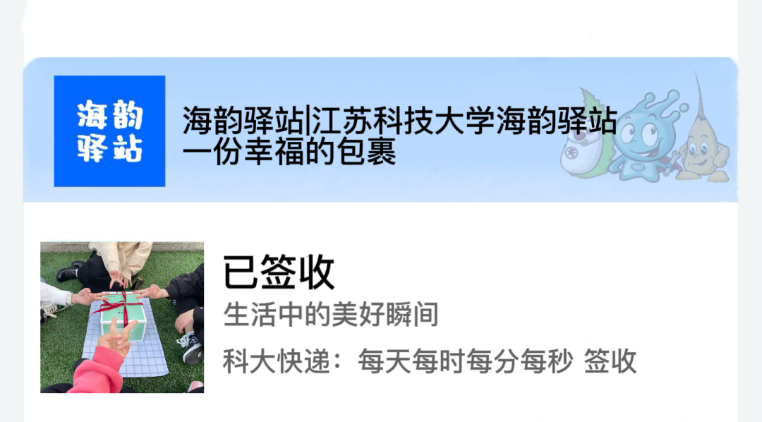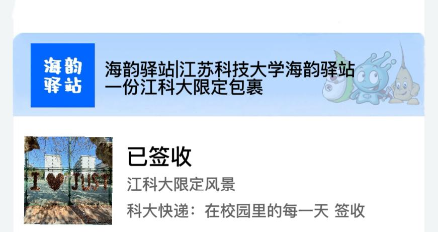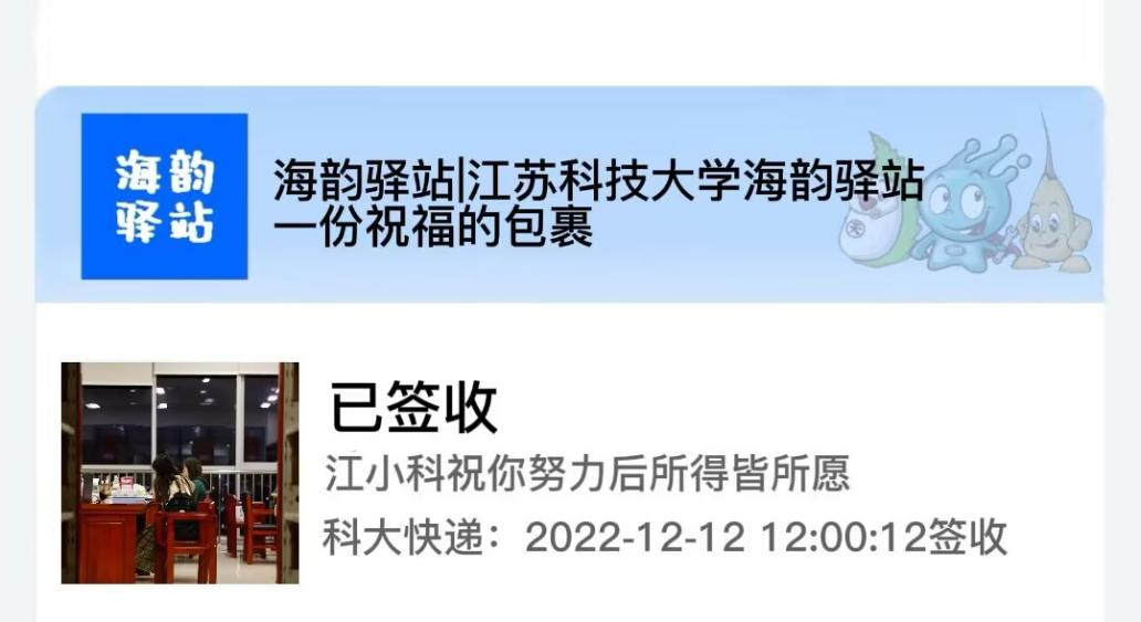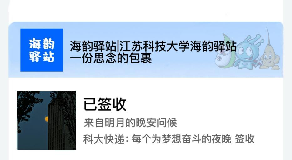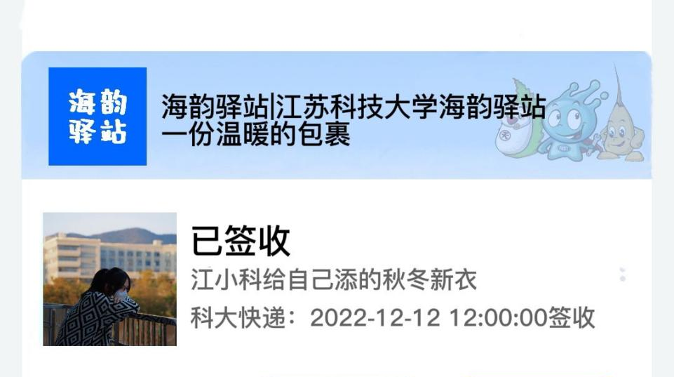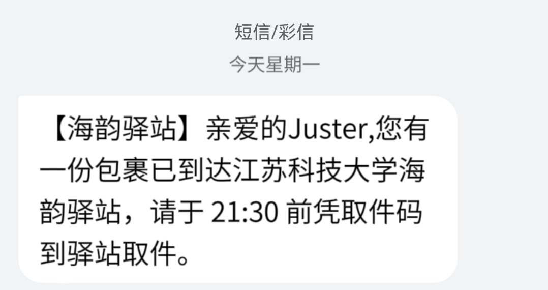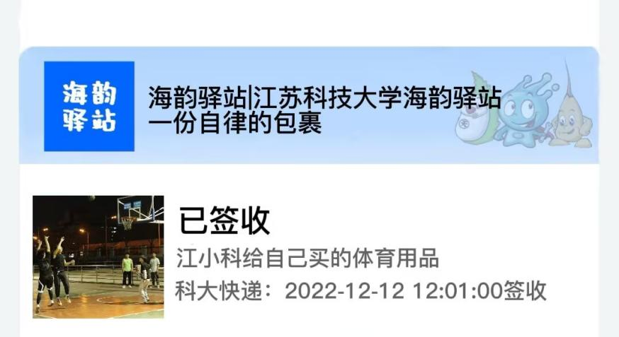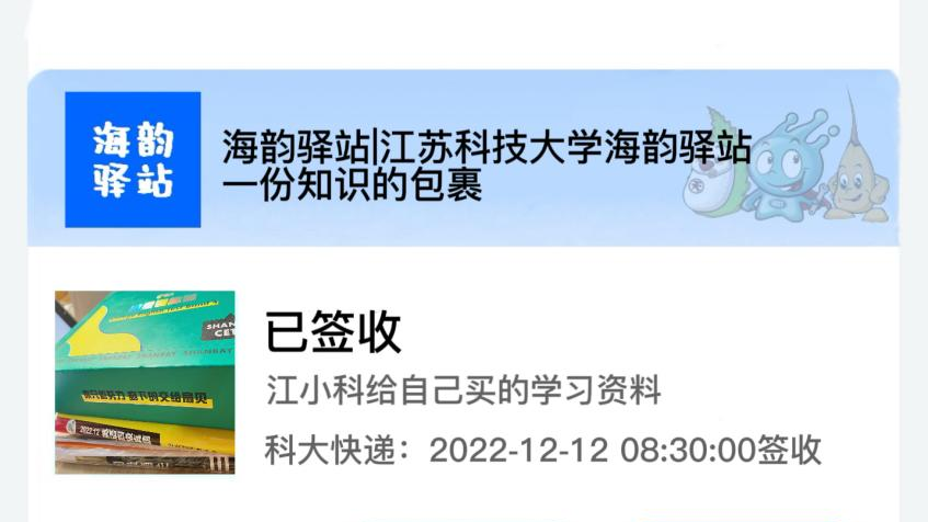 您有一份包裹已到达江苏科技大学海韵驿站