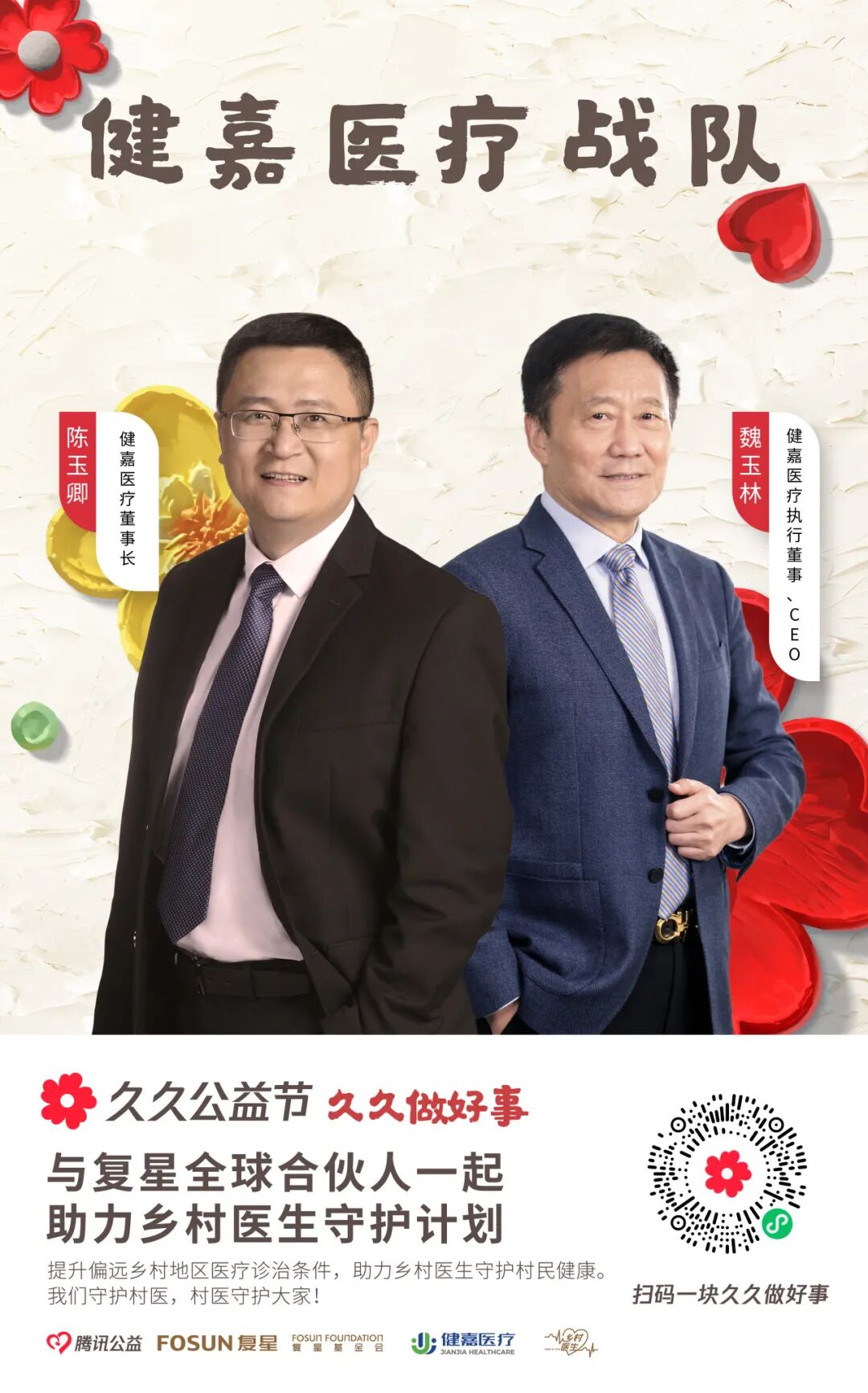 复星基金会艺术顾问、关爱豆蔻计划明星倡导官侯宇;乡村医生守护计划受助村医张威、姚芳;青年村医培养计划受助村医钟丽萍、才让拉毛,6位公益主人公的暖心故事登录腾讯公益久久主会场“摇一摇”,助力公益项目传播,让更多爱心公众看见“好事在发生”。