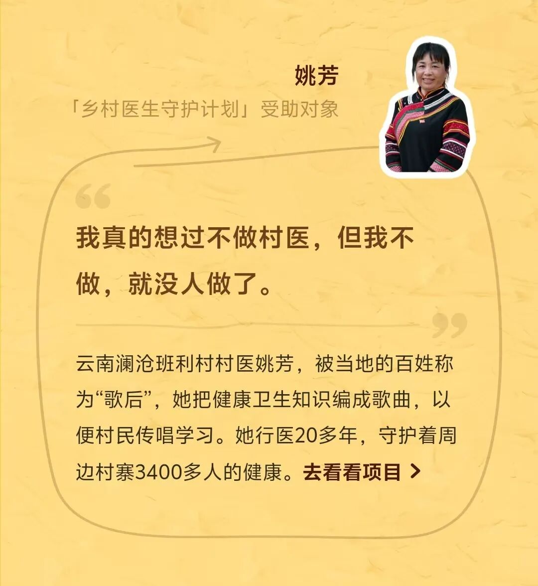 乡村医生项目4大区域,即云南大区、西部大区、北部大区、东南大区,近40位驻点队员和星光队员,线上+线下开展基层劝募活动,动员666人次,筹得近1万元善款,支持青沃计划(青年村医培养计划)项目。