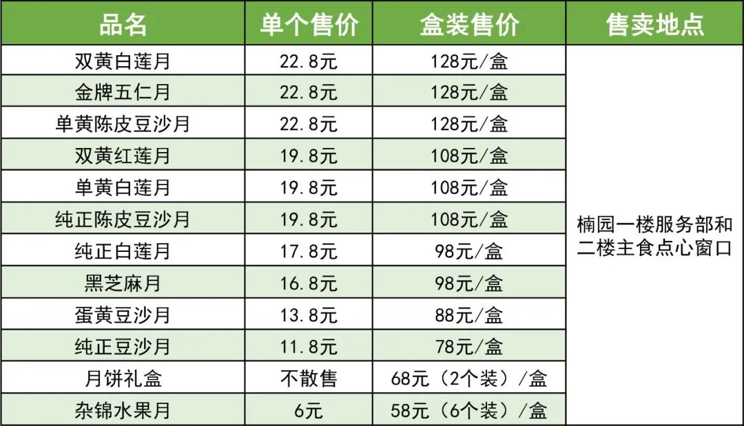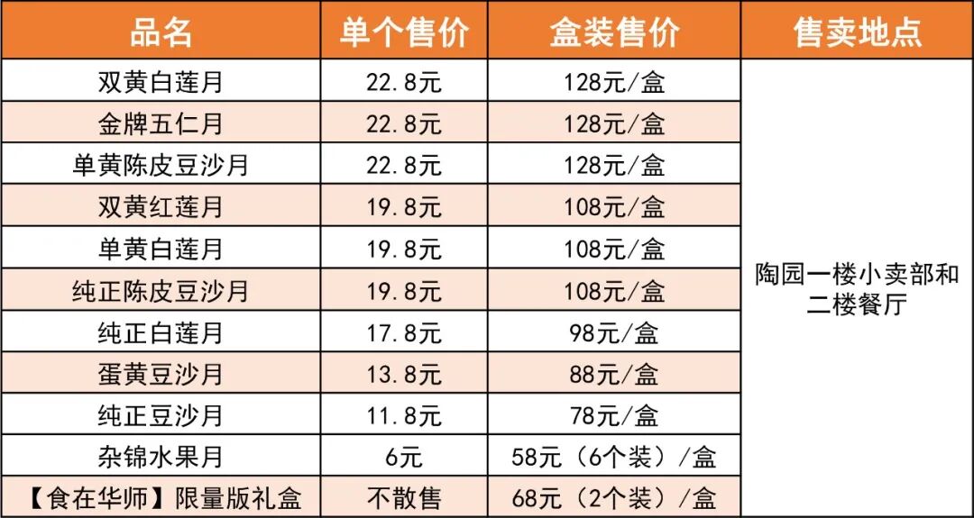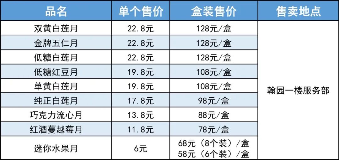 快来了解华师各类月饼价格