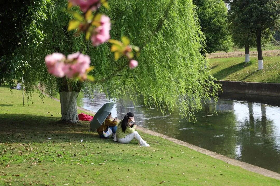 柳枝下,河畔边,捧书一本,静静品味我的大学生活。