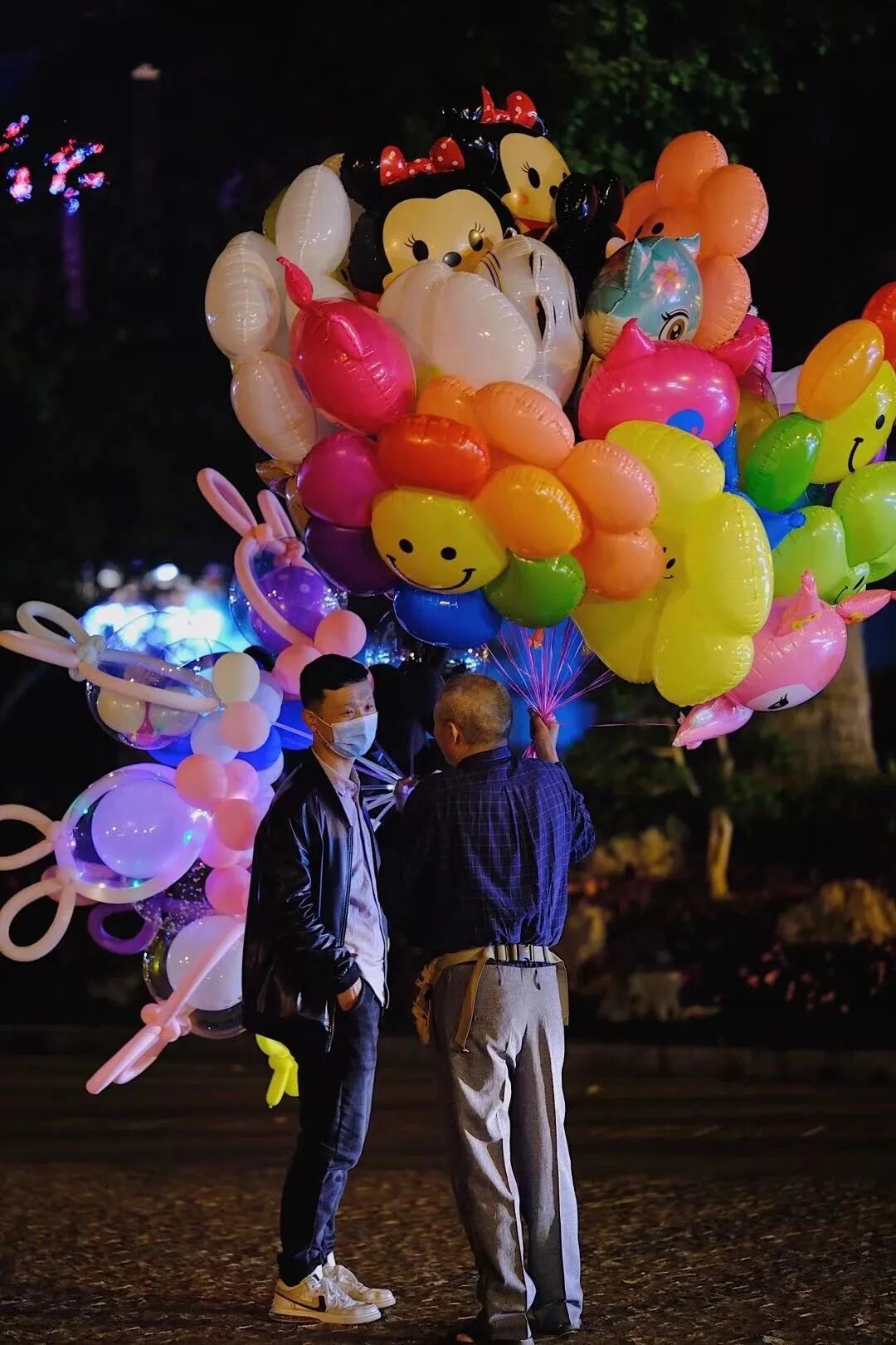黑咕隆咚的夜被五颜六色的氢气球点亮!