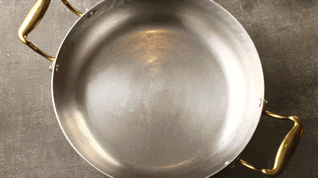 ⾼温蒸腾下,和⽜眼⾁迅速冒出滋滋油花