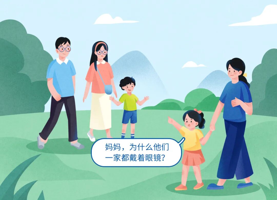 随着近视的研究越来越深入,我们发现近视分布呈现家族聚集性。也就是说,父母有一方或者双方是近视,孩子确实会比父母都不近视的孩子更容易近视。