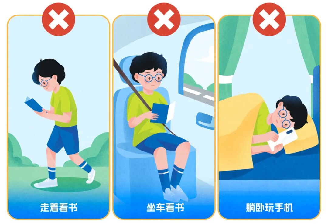 要是孩子喜欢写字时歪头、握笔时指尖距笔尖过近(< 2 厘米),长时间下来,近视患病率就会比其他小朋友高[7]。而孩子在行走、坐车或者躺卧时阅读也是不好的读写习惯。