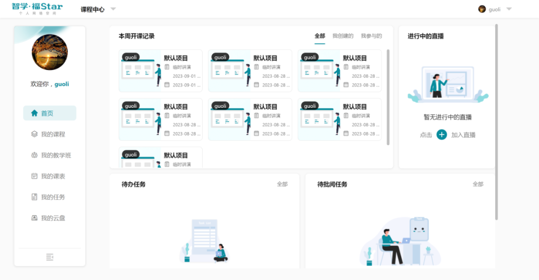 在智学福star平台,师生可通过课程中心进行备授课及线上学习,在云平台上,查看课表、上传课件、布置学习任务、提交作业都很便捷。通过该平台与前端智慧教室的链接,学生可获取前端授课内容,包含板书、课件、课程录播等,便于课后回顾及复习。