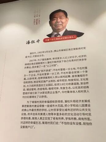 其二,榜样为先。榜样的力量是无穷的。乡村发展需要激活那些有才能、有乡土情结的人,号召他们积极参与乡村公共事务,成为乡村自治的重要参与力量,推动一方振兴。在参观佛山好人馆的过程中,我们重点关注了紫南村潘柱升书记的事迹。潘书记毅然放下自己在贵州打拼多年的事业,回乡做了一名“义工村官”,此后紫南村不仅实现了经济腾飞,还真正实现了老有所养、学有所教、病有所医。