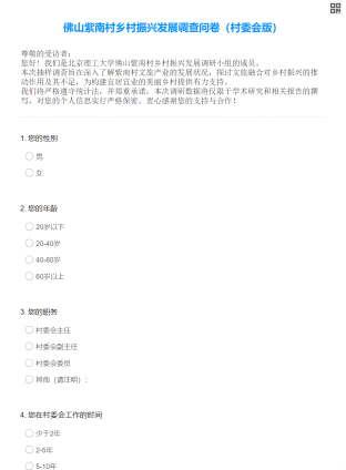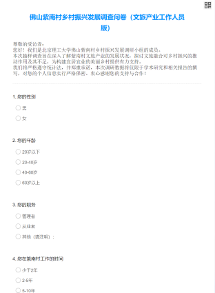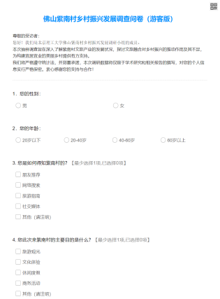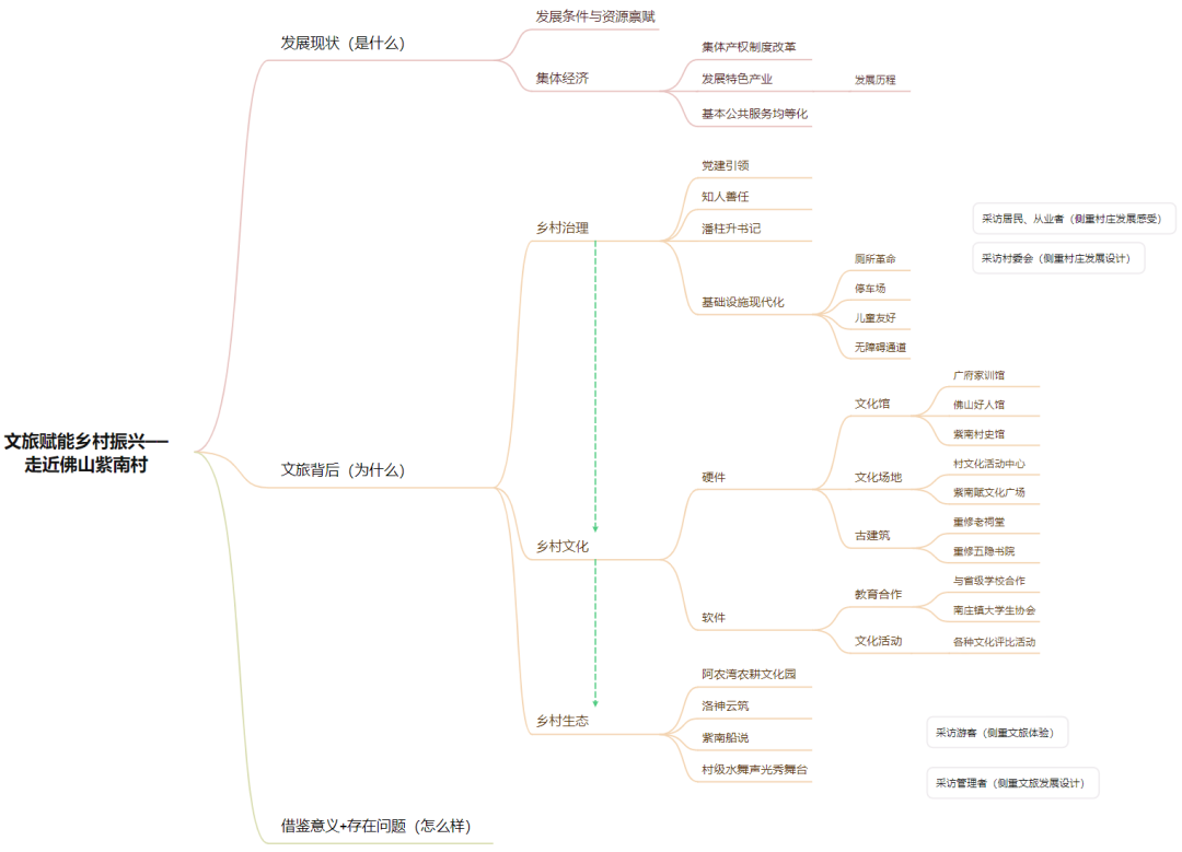 实践团队组建后便开始了前期准备工作,基于互联网形成了对紫南的初步认识。团长郭为佳绘制了调研导图,明晰了调研内容。团员赵雨桐、郑智元、邵静怡、赵娅男设计了分别针对村民、游客、村委会工作者、文旅产业工作者的调查问卷,做到了带着问题出发。