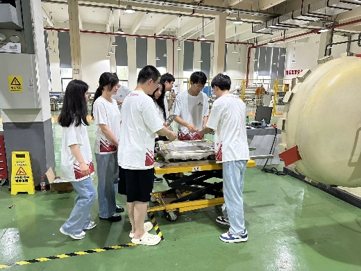 实践团前往参观智能防务技术中心创新中心的技术研发实验室和装备制造工厂,体验防爆装备从材料研发到装备成型再到性能测试的全部流程。通过电控功能开发调试、纤维原材料改性增强、防弹纤维布裁剪备料、防爆头盔铺盔热压、成品质量检验等重现了防爆装备研制的关键步骤,对防爆装备的核心技术与工艺特点有了更深入的了解。