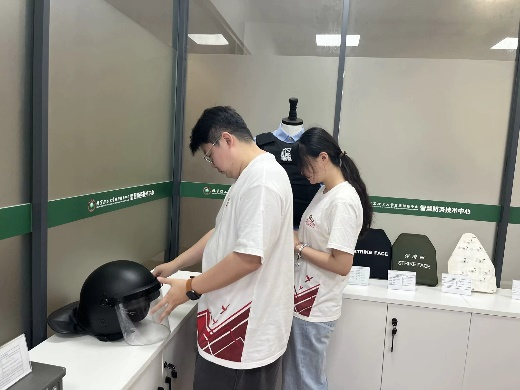 通过实际体验,实践团成员感受到了防刺装甲的坚固耐用、防爆装备的精密设计以及防弹头盔的轻便舒适。