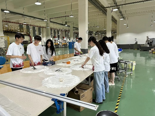 实践团成员前往厂房体验防爆装备的制作过程,主要体验的是防弹层UHMWPE层合板的压制等。