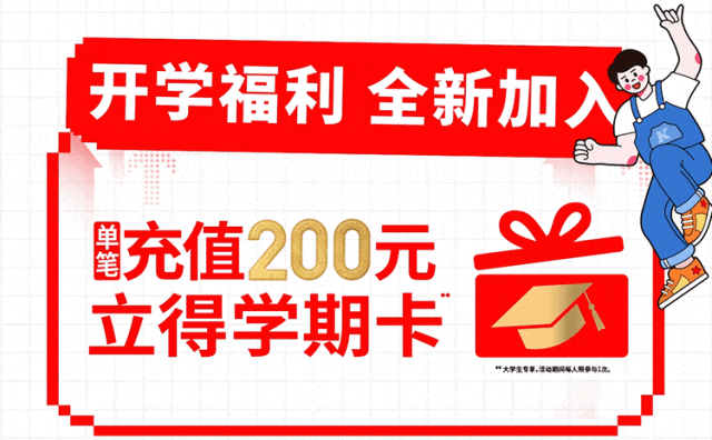 请在购买前仔细阅读《肯德基付费会员服务协议》及《肯德基2024秋季学期卡(120天)购买须知》,肯德基2024秋季学期卡(120天)权益详情以肯德基超级APP或肯德基+小程序【大神卡】-【学期卡】-【权益详情】页面公示为准。每个WOW会员仅限购买1张。活动自2024年9月1日起至2024年9月30日。活动期间,一年内在支付宝/微信客户端通过中国(未免疑义,不含港澳台地区)高校在校大学生学生身份确认(具体以《校园信息服务须知》约定为准)且是肯德基WOW会员的用户,前往肯德基超级APP或肯德基+小程序,登录肯德基WOW会员后,通过【首页-余额】或扫描指定二维码进入充值中心界面,点击指定活动键位一次性支付200元可得:(1)200元充值金额;(2)价值29.9元*肯德基2024秋季学期卡(120天)。活动期间,每人限参与1次。请在参与活动前仔细阅读《肯德基付费会员服务协议》及《肯德基2024秋季学期卡(120天)购买须知》。同一ID、同一设备、同一手机号、同一支付账户、同一取餐联系电话、同一送餐联系电话、同一送餐地址,均视为同一用户。对于任何通过不正当手段(包括但不限于作弊、通过机器行为等方式恶意刷单)参加活动获取权益或者不符合活动规则的行为,我们将在不事先通知的前提下取消该用户参与活动的资格和已获得的相应权益。不与其他优惠共享。