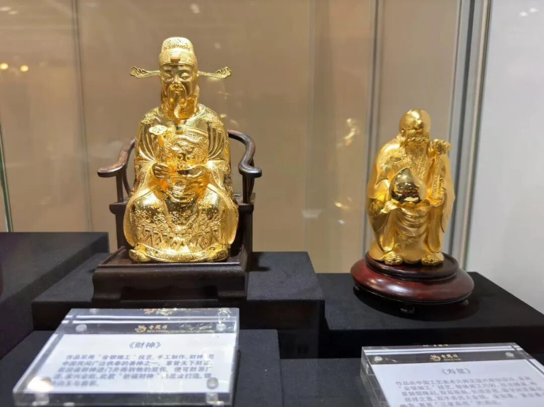 老凤祥国家级非遗——金银细工作品再度成为展会焦点,如中国工艺美术大师沈国兴的作品《寿星》,寓示长寿如意,三星高照。还有深受香港消费者喜爱的《财神》《金知玉叶》《和和美美.多子多孙》等蕴含吉祥寓意的作品彰显极致匠心。