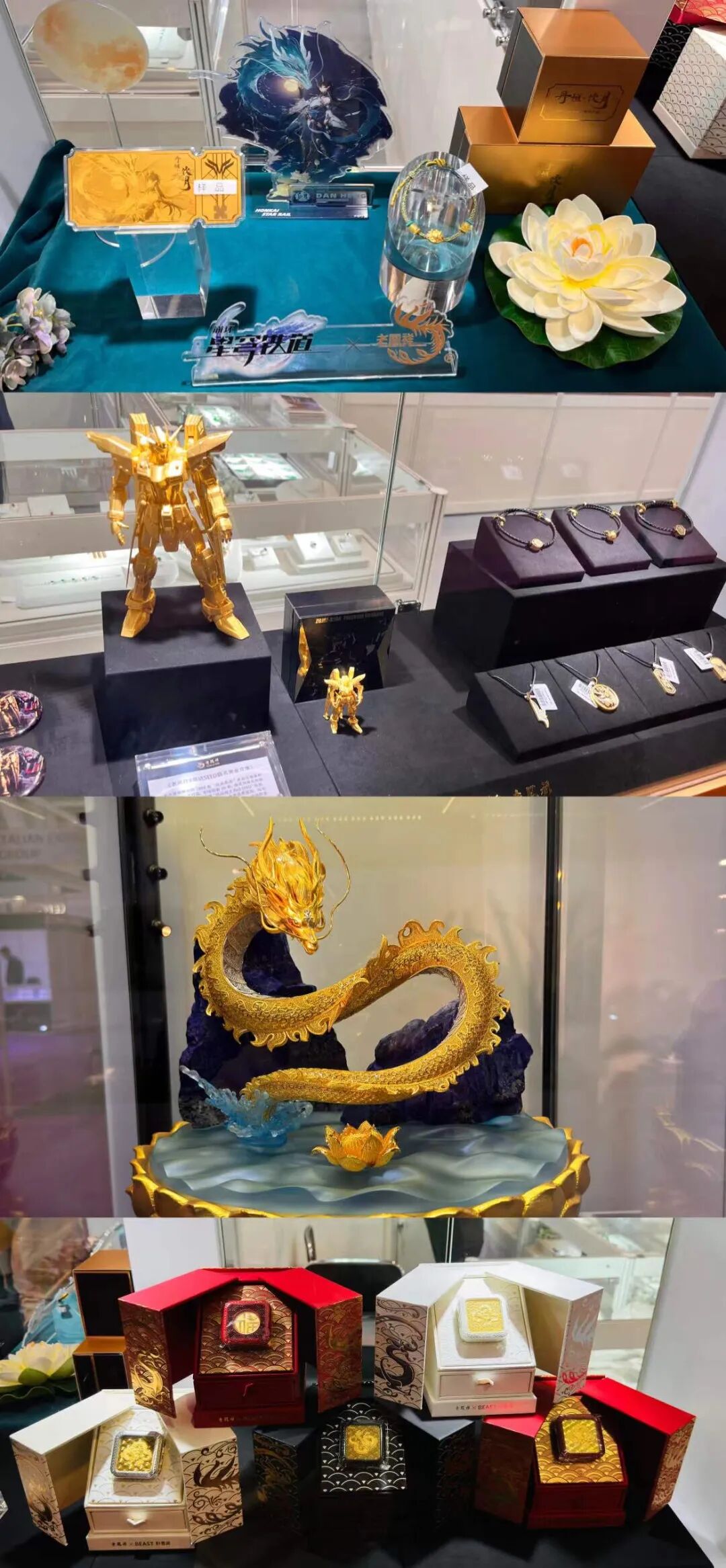 近年来,老凤祥致力于品牌年轻化战略,以其卓越的创新实践,为传统国货品牌树立了多个典范。在本届香港珠宝展上,老凤祥携手万代南梦宫推出的国内首款《机动战士高达SEED》纯黄金系列藏品,历时六个月倾情打造的与米哈游联名作品《崩坏:星穹铁道》系列黄金摆件,以及与野兽派联名推出的足金车载香氛,体现在创新设计和跨界合作方面的卓越成就。