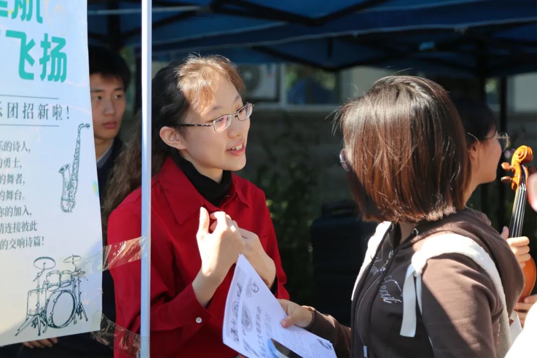 电气工程及自动化学院2021级本科生李浩然一直在北极星支教团的摊位前驻足咨询。“学长给我介绍了北极星支教团举办过的一些活动,真的能做出很多对社会有益的事情,我特别感兴趣。”他说,“一路看过来,不仅有兴趣类社团,还有学术类、公益类社团……大家应该都能在这里找到自己志同道合的朋友。”