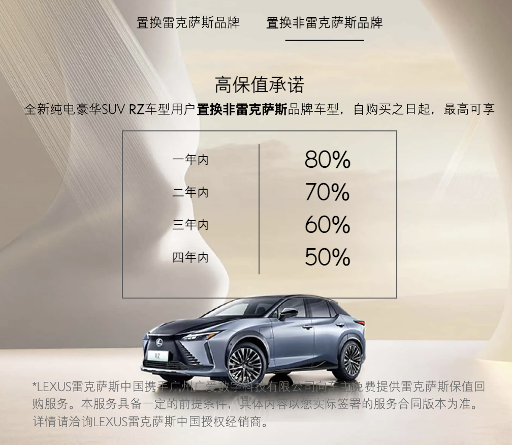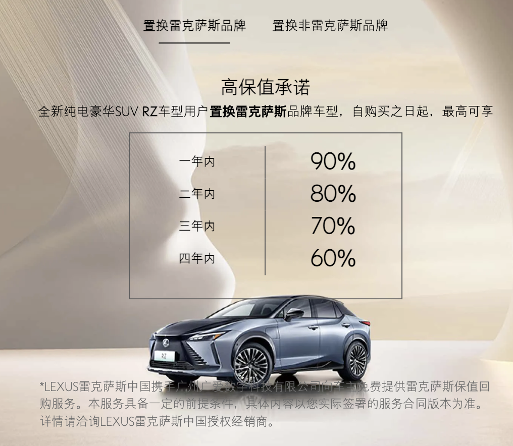 但营销资产要兑现为终端价值,需要实在的产品支持和服务落地。短片最后,雷克萨斯拿出用真金白银「守护」用户的「微笑曲线」,不但将品牌混动车型6年15万公里超长免费保修保养政策延续到了纯电车型全新RZ,还宣布了电气化时代的新承诺:全新RZ的车主,一年内置换同品牌车型可以享受最高90%的高保值政策。