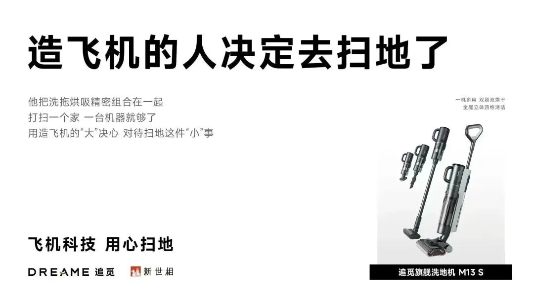 在一个极其内卷的行业,从产品创新点到文案,只要你创新,就会马上被模仿和抄袭,希望塑造一个只能追觅使用并且追觅未来也能使用的品牌故事。