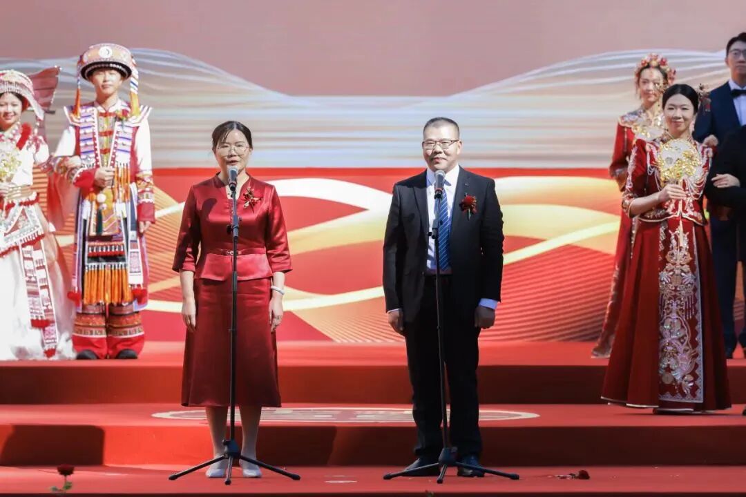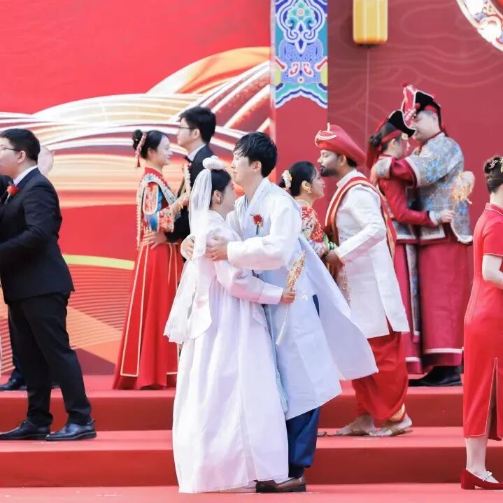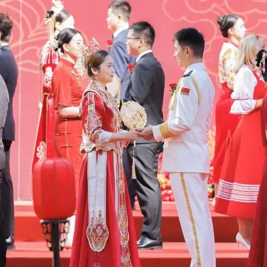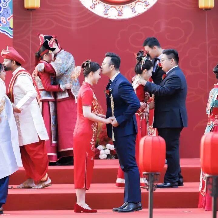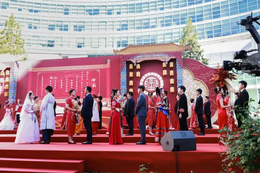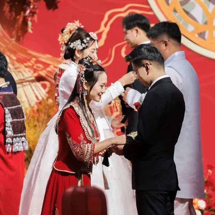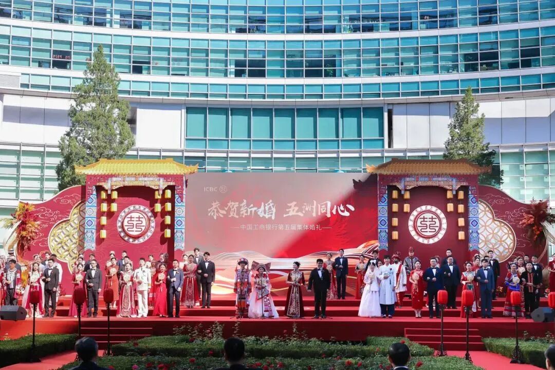 中国工商银行党委成员,部分董事会及高管层成员出席。婚礼现场,来自境内外机构的40对新人举行了庄严的婚礼仪式,新人代表与新人父母代表进行了真挚的发言与互动。退休员工中的金婚伉俪代表讲述了和谐家风故事,陕西延安分行腰鼓舞表演、新人视频展示等环节也为婚礼增添了喜庆欢快的气氛。