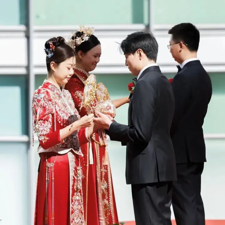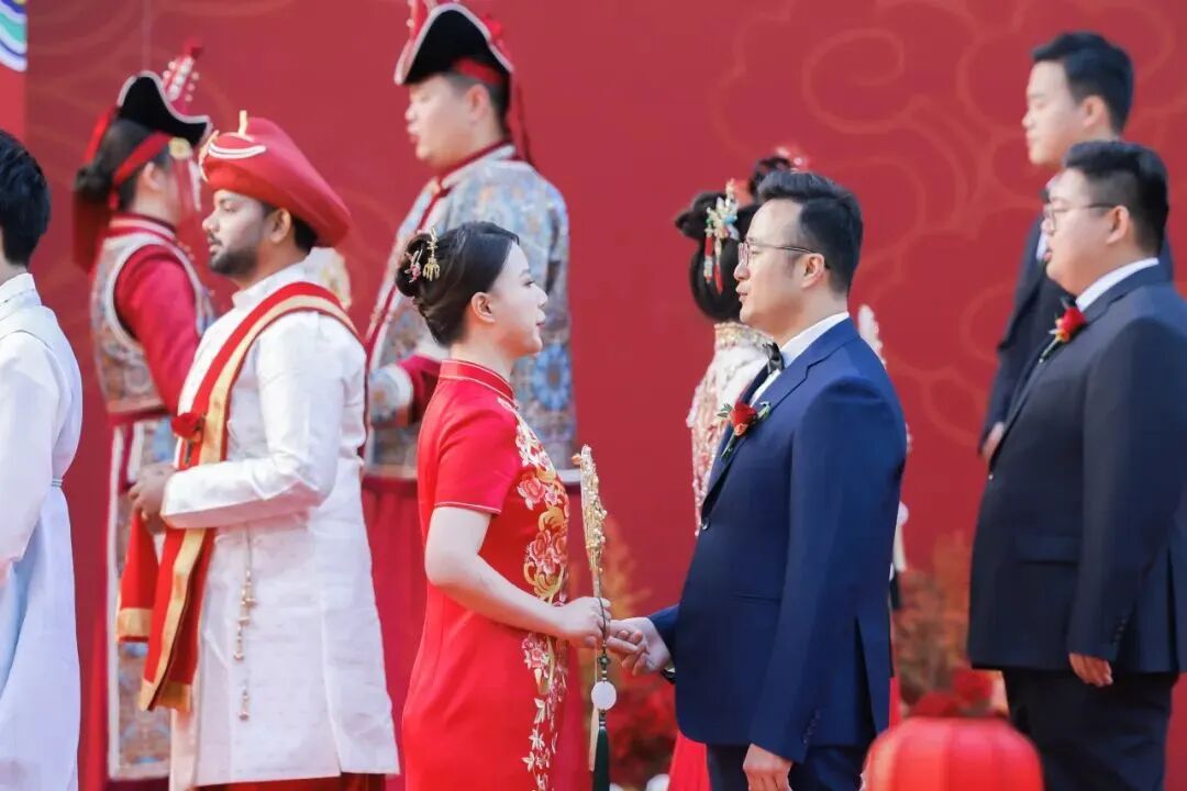 行党委向新人送上新婚祝福。祝福新人们同心同向、相濡以沫,同心同德、修身齐家,常怀感恩之心,赓续传统美德,同心同行、前程锦绣,厚植家国情怀,以推进工商银行高质量发展的实干实绩,书写为中国式现代化挺膺担当的奋斗篇章。