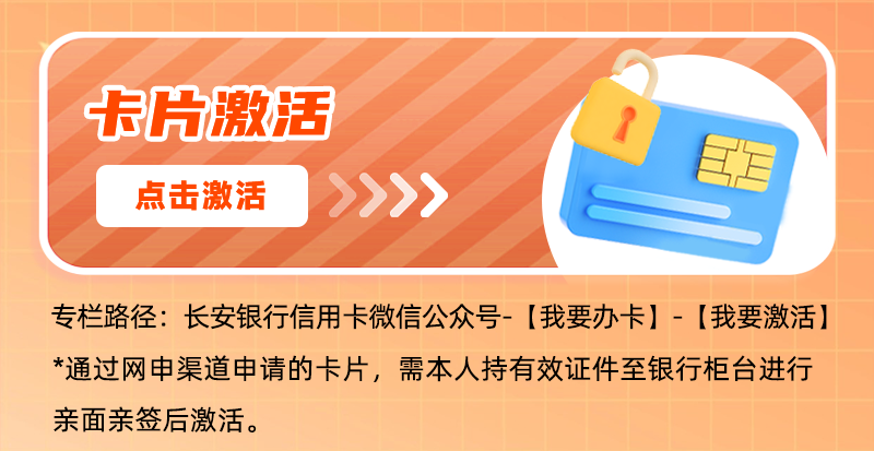 文章内容来源于公众号:长安银行信用卡,点此可查看原文,内容版权归相关企业所有,本网站仅供交流学习。若涉及版权问题或存在侵权情况,请及时与我们联系,我们将第一时间进行删除处理。