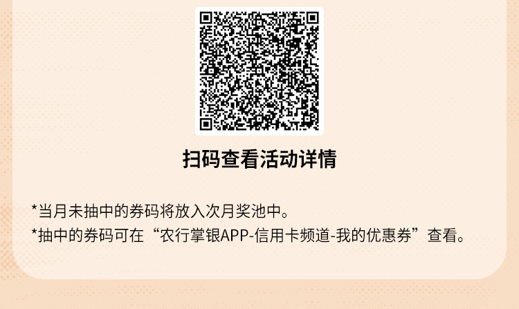文章内容来源于公众号:农业银行信用卡至诚相伴,点此可查看原文,内容版权归相关企业所有,本网站仅供交流学习。若涉及版权问题或存在侵权情况,请及时与我们联系,我们将第一时间进行删除处理。
