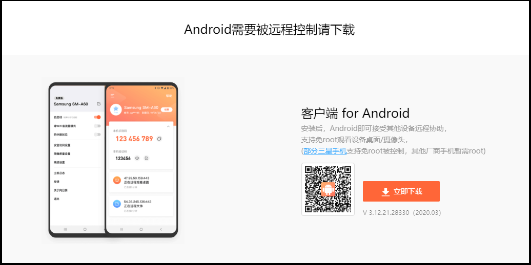 这里注意一下,在安卓系统里面有2个向日葵App,一个是控制端一个是客户端,控制端就是控制手机用的,被控端就是被控用的。