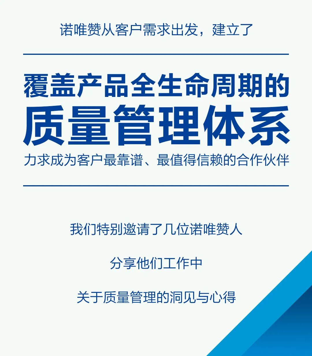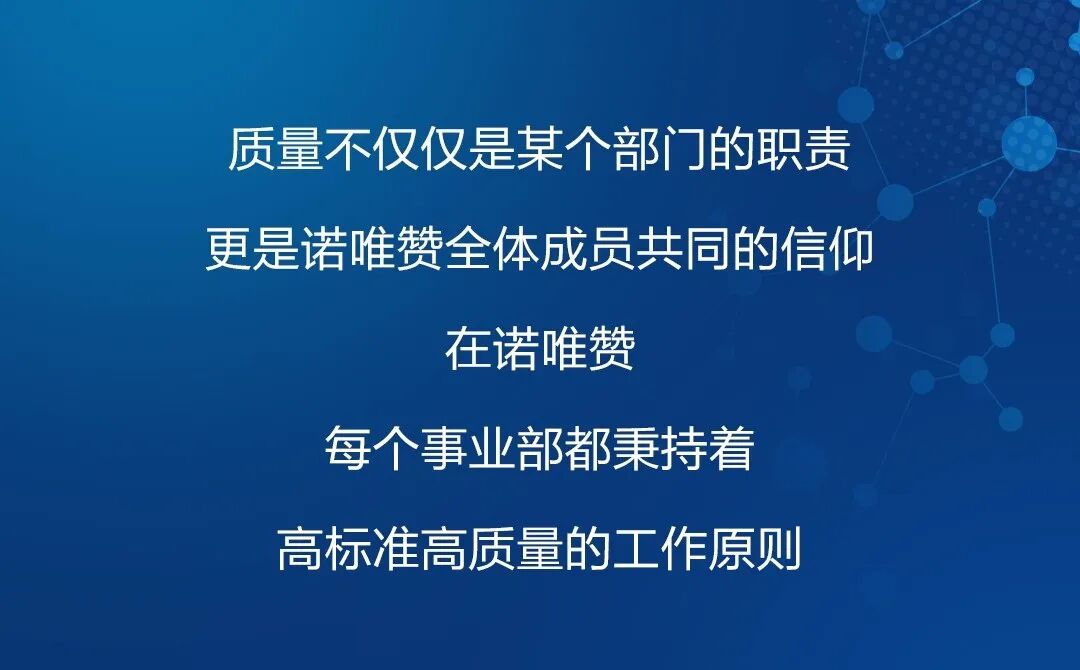 摘要:质量不是一个部门的责任,更是诺唯赞人共同的信仰。