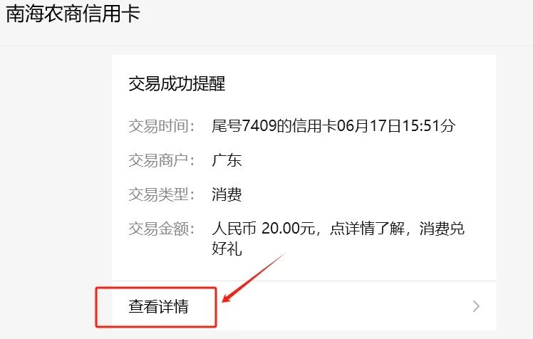 第二步:消费后收到“交易成功提醒”信息,点击该信息“查看详情”可进入活动页面。当天通过点击最新“交易成功提醒”可查看客户最新的消费抽奖和集能量的情况。