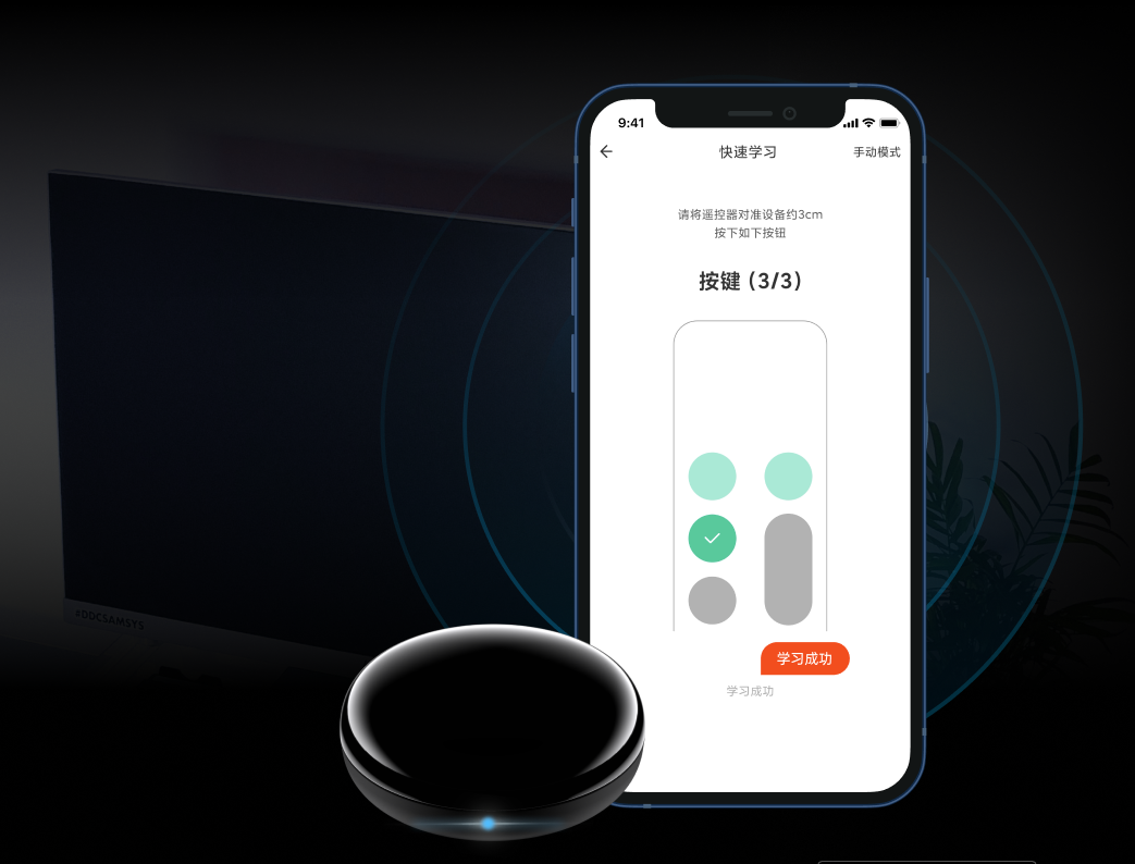 当搜索不到对应的红外电器时,还可以通过自定义配置遥控器面板,智能学习匹配需要的红外遥控器,开启无限智能生活。