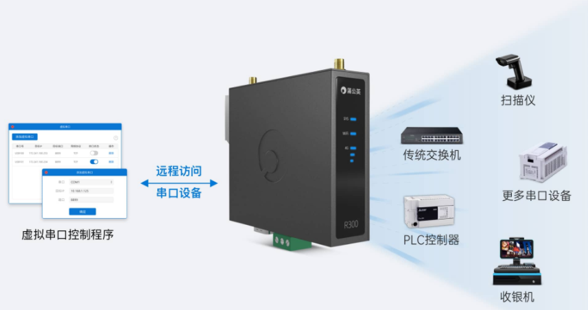另外,如果将R300智能组网,通过蒲公英客户端访问虚拟串口最终可实现远程控制、数据传输等功能。