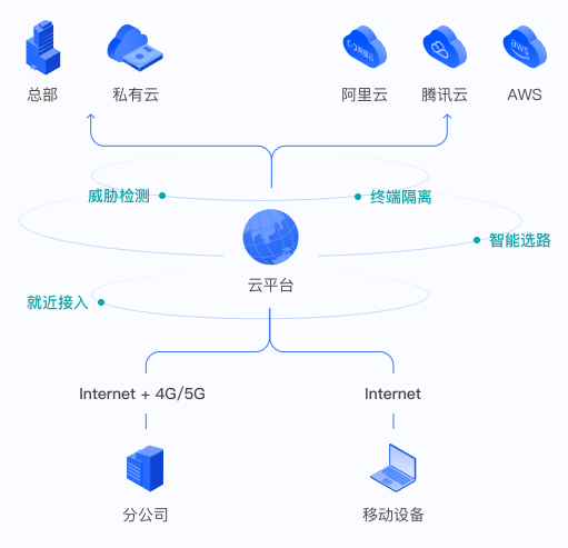 基于SD-WAN技术,提升访问速率,加速IT人员故障处理效率的同时,为员工提供稳定的上网体验,流量监测和智能流量分配以保障各业务模块保持正常吞吐量,为业务不间断保驾护航。