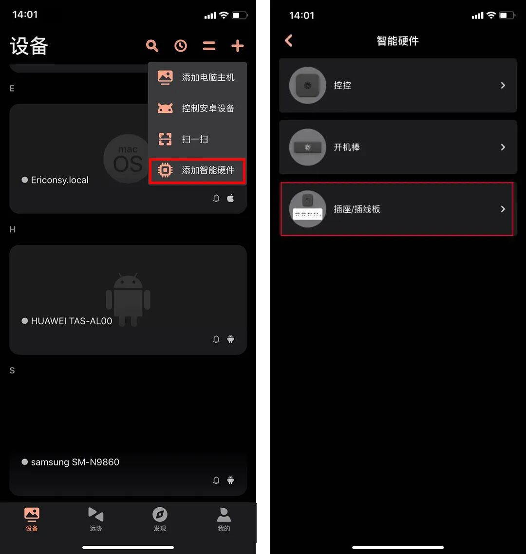 添加完成后,接下来是绑定主机。3个独立插孔可以绑定电脑/打印机/NAS等,也可以放在客厅里远程开关鱼缸灯或新房定时开启电风扇除异味等。