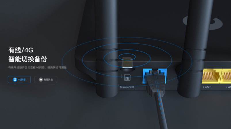 当监测到有线网络不能使用时,X4C会智能切换到4G网络,提高网络可用性。
