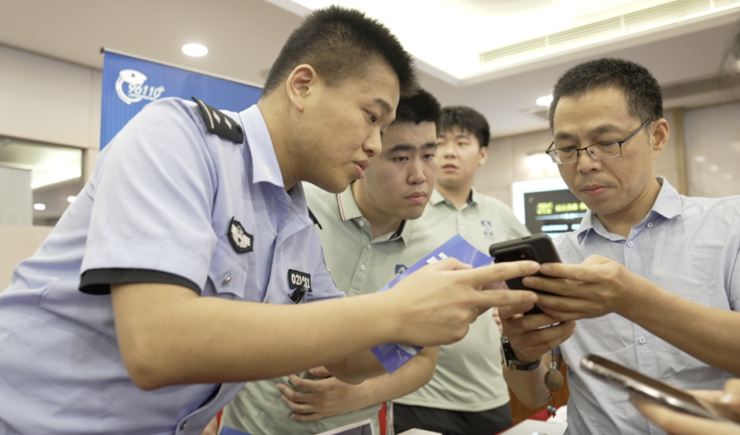 枫林路派出所民警现场指导安装反诈APP,介绍了企业工作中常见的诈骗手段,并作出了解析以及防诈骗措施,有效地提高了参会企业关于网络诈骗行为的认知和防范能力,并现场解答了群众关于应对诈骗的疑问,得到了现场群众的好评。