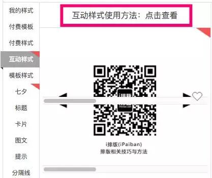 这些样式都在i排版(iPaiban.com)编辑器,左侧样式栏中【互动样式】分类里。还有阅后即焚,自动显示,旋转样式,都在互动样式当中,挨个等着你去翻牌子。