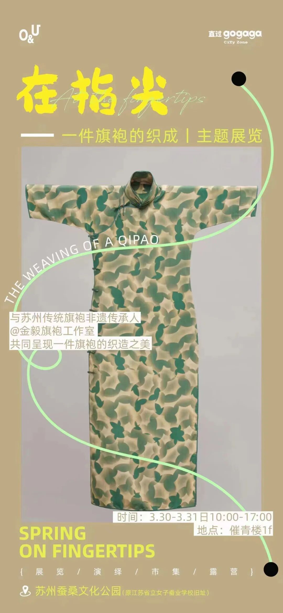与苏州市传统旗袍非遗传承人金毅联动,结合在地非遗作品/旗袍展示/旗袍制作工艺等,从切片/织造/呈现三个结构呈现旗袍织造的故事。