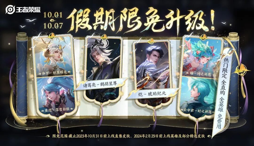 (限免范围:截至2023年10月31日前上线直售皮肤、2024年2月29日前上线英雄,及部分精选皮肤)