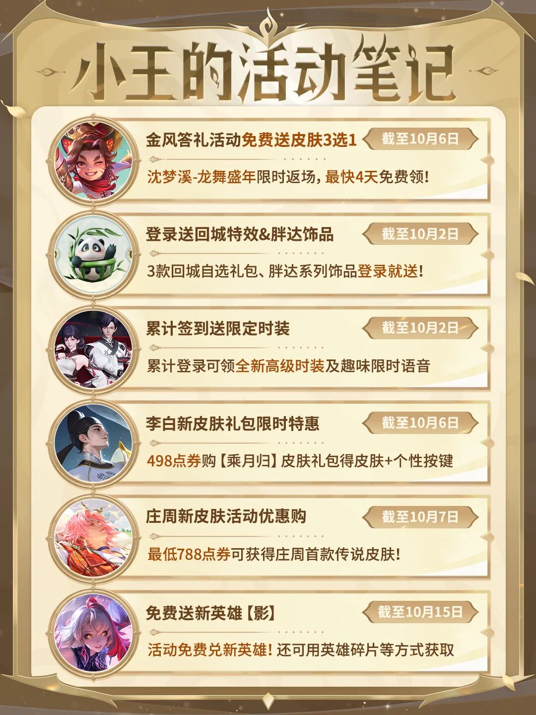 ♢ 活动时间:9月29日00:00-10月3日23:59