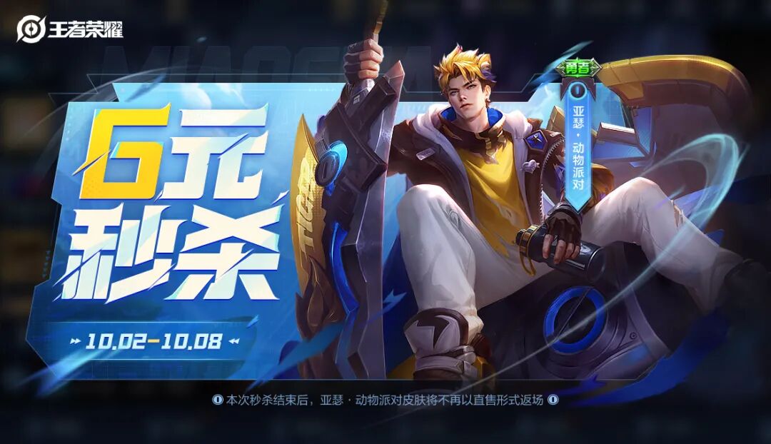 * 本次秒杀结束后,亚瑟-动物派对皮肤将不再以直售形式返场