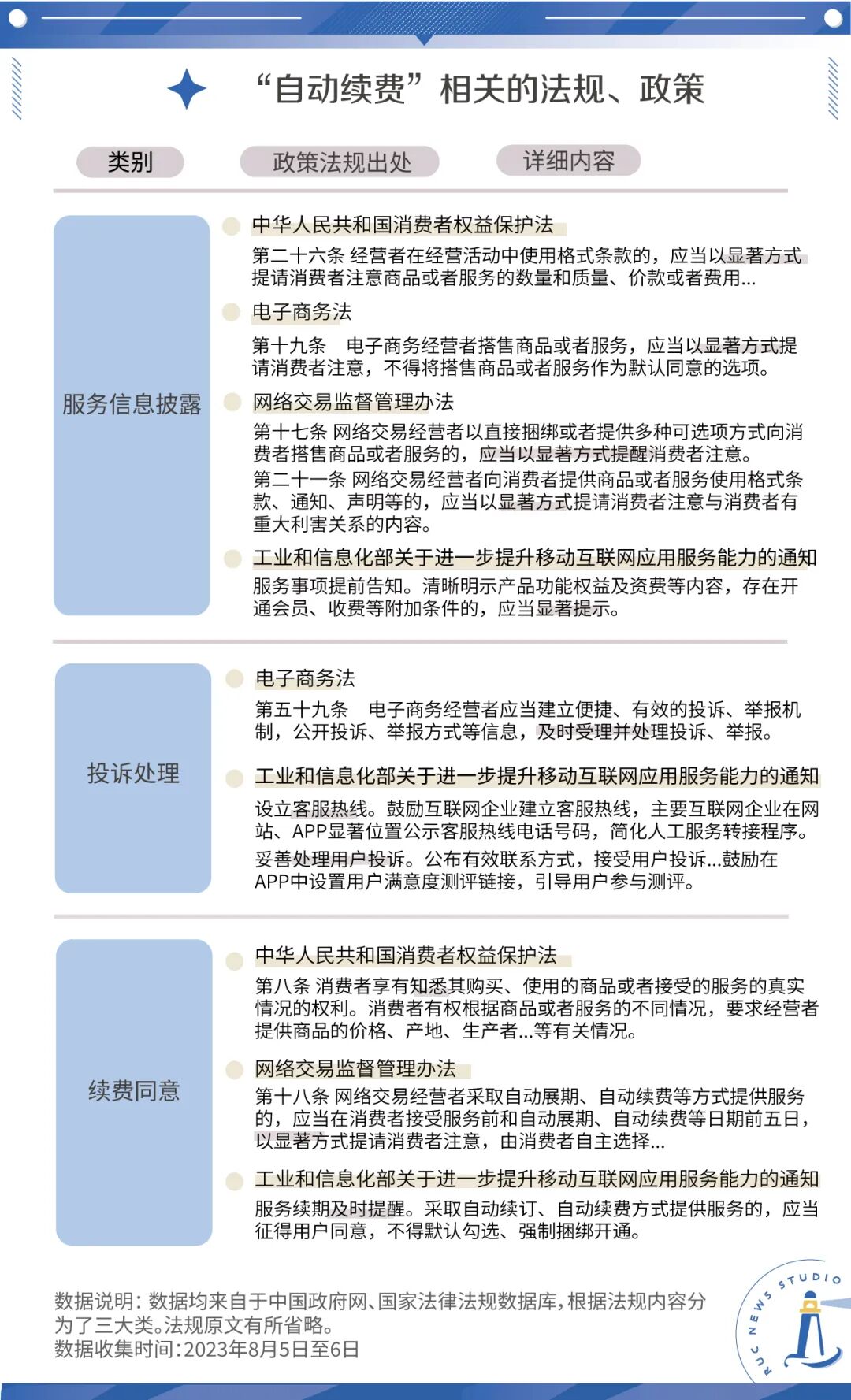 在用户与平台关于自动续费的博弈中,消费者的维权意识很关键,但法律与政策的保驾护航更不能缺少。目前我国自动续费相关的法律法规明确了经营者的一系列义务:应当全面、真实、准确、及时地披露商品或服务信息;建立有效的投诉方式;以及在自动续费前五日以显著方式提醒消费者[3]等等。