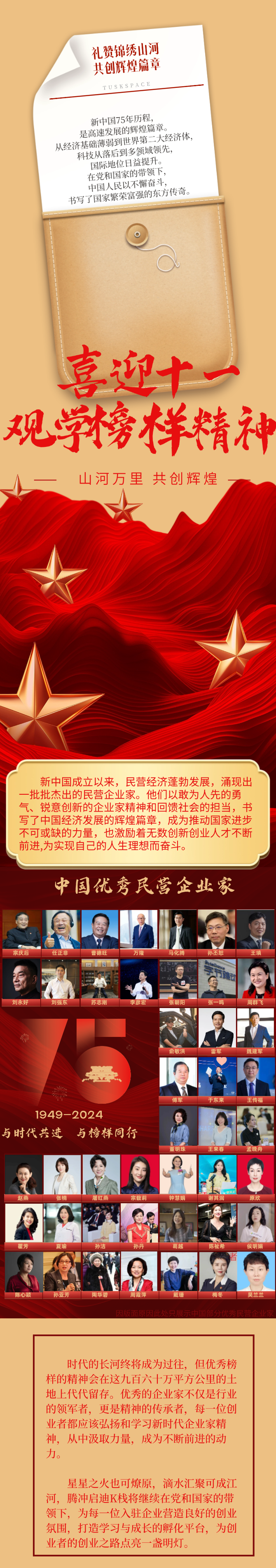 摘要:新中国成立以来,民营经济蓬勃发展,涌现出一批批杰出的民营企业家。他们以敢为人先的勇气、锐意创新的企业家精神和回馈社会的担当,书写了中国经济发展的辉煌篇章,成为推动国家进步不可或缺的力量,